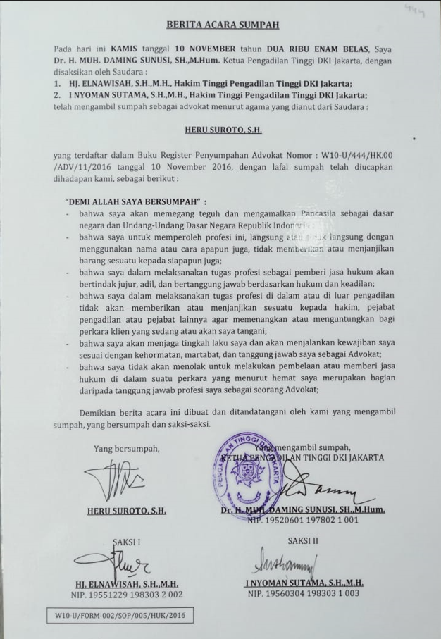 Berita Acara Sumpah Pengadilan Tinggi DKI Jakarta